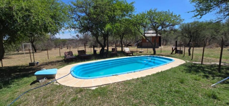 Pileta con solárium con reposeras y camastros para su comodidad. excelente vista hacia las sierras. Rodeados de paz y naturaleza.